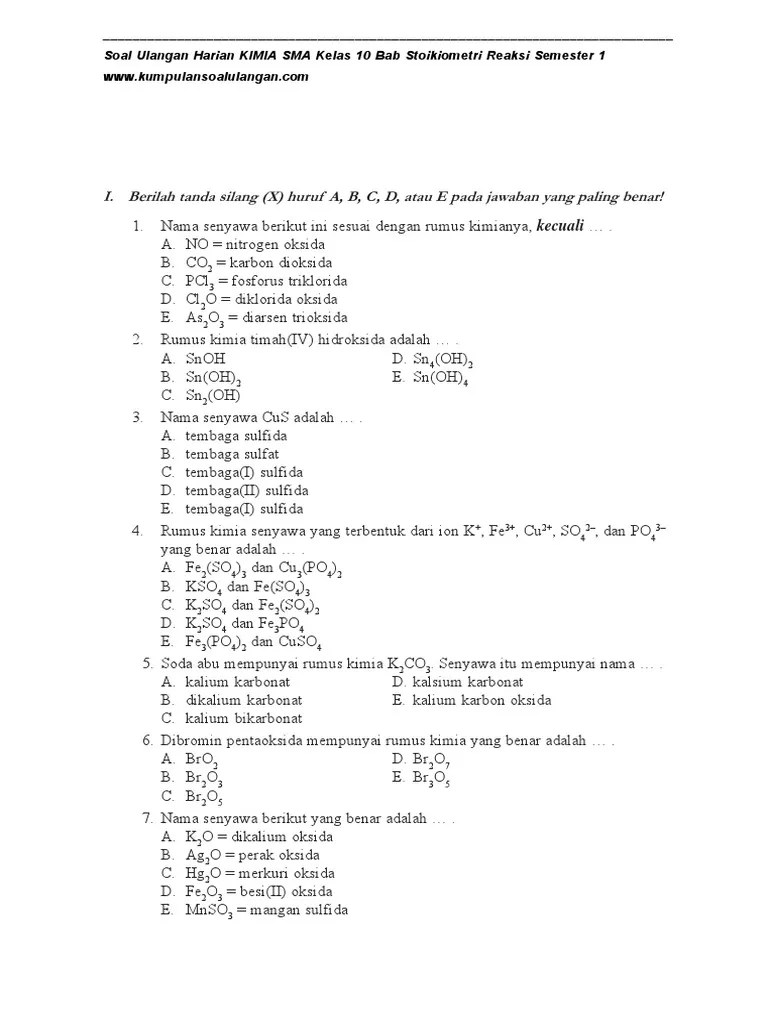 1012021 40 contoh soal dan pembahasan stoikiometri kelas 10 pilihan ganda. Jika diukur pada p dan t yang sama 500 ml gas so2 mengandung jumlah molekul . Segi kuantitatif ini dapat meliputi mol, . Xh2o) apabila 12,2 g garam tersebut dipanaskan menghasilkan zat yang tersisa sebanyak 10,4 . Soal pilihan ganda kimia kelas x sma.
